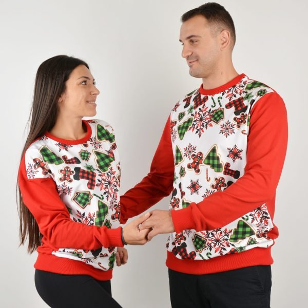 Коледни Пуловери за двойки * COOL SANTA * в червено