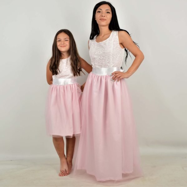 Официални рокли с дантела и тюл Мама и Аз в бебешко розово
