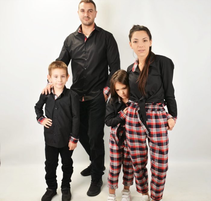 Знаем колко трудна задача е да се открият стилни, качествени и широко приложими еднакви дрехи за мама, татко и дете. Затова с този модел заложихме на комфорта и стила – предлага се във вариант черни ризи за баща и син, както и ризи за майка и дъщеря с карирани детайли. А най-хубавото е, че можете да ги комбинирате с еднакви панталони за баща и син и мама и дъщеря. Така ще получите напълно завършена визия от глава до пети с пълен комплект дрехи мама татко и аз.